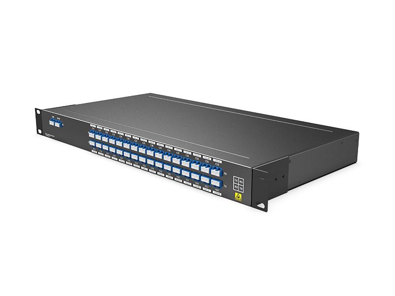 Multiplexador/Demultiplexador DWDM de 32 canais, suporta 32 canais de diferença de 800G em duas fibras ópticas para transmissão ponto a ponto. Funciona em sistemas de transferência IDC.