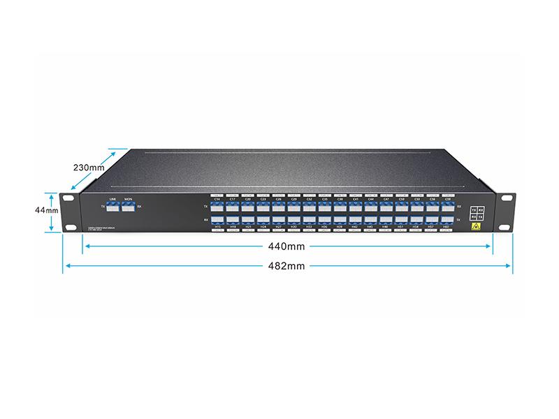 O DWDM de 32 canais a 150 GHz é um dispositivo DWDM totalmente passivo, que suporta baixa perda de inserção (portas de comprimento de onda < 6,0 dB) e suporta operações de 800G x 32 canais em um sistema de transferência DWDM.