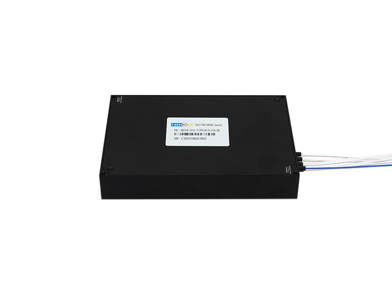 Interruptor óptico MEMS PM 1X10, encapsulamento em módulo, tensão de acionamento de 5V, 1550nm.