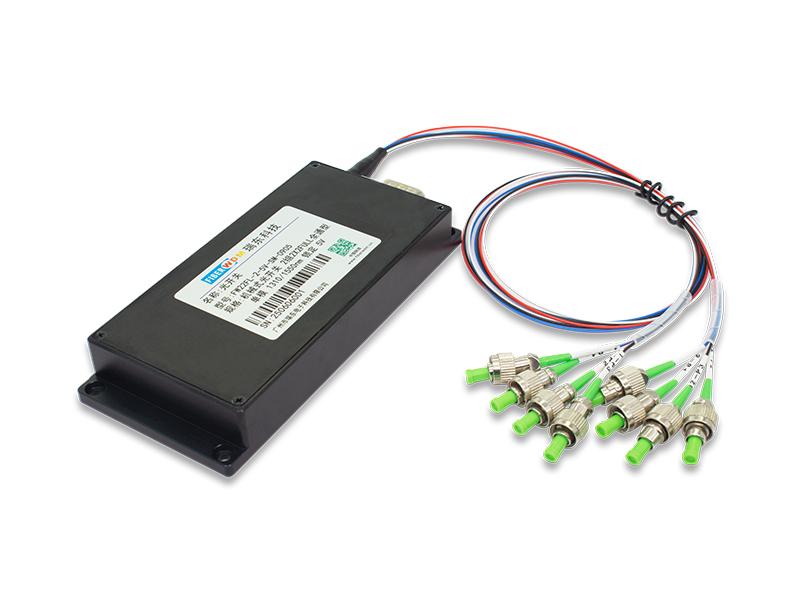 Tipo de passagem completa 2X2, modo único 1310/1550 nm, com trava/sem trava, 5 V, fibra de 0,9 mm e 0,5 m, interface de comunicação RS485, módulo de caixa 135 × 60 × 20 mm