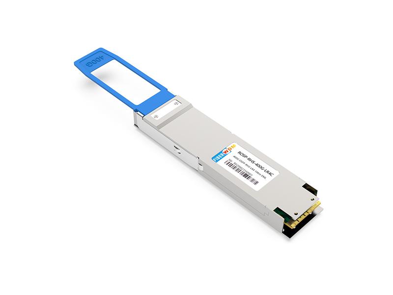 | ROSP-RHS-400G-LR4C | OSFP-RHS, 400GBASE-LR4, 10 km em fibra monomodo (SMF), com DSP. Consumo de energia <10 W, conector LC duplex. |