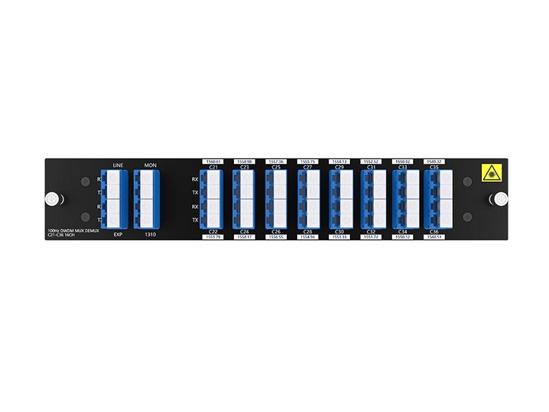 O DWDM de 16 canais é um dispositivo totalmente passivo e em formato de módulo LGX, que pode ser instalado em um rack de 1U com 2 slots; a perda de inserção do produto é inferior a 3,5 dB. Em conjunto com amplificadores DWDM e um dispositivo DCM, o sistema de transferência DWDM de 8 canais pode suportar transmissões de longa distância.