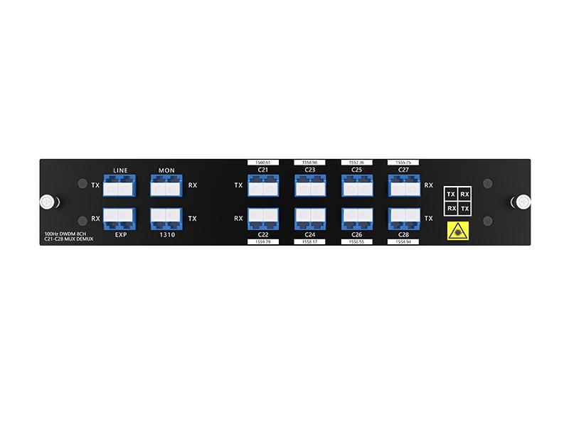 O DWDM de 8 canais é um dispositivo totalmente passivo e um módulo LGX, que pode ser instalado em um rack de 1U com 2 slots; a perda de inserção do produto é inferior a 2,4 dB. Em conjunto com amplificadores DWDM e um dispositivo DCM, o sistema de transferência DWDM de 8 canais suporta transmissão de longa distância.