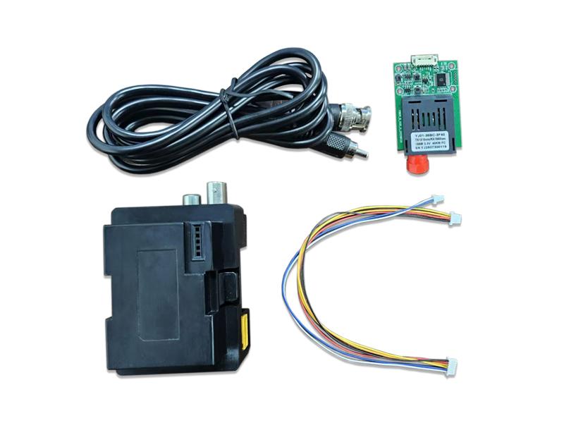 A extremidade de aterramento é diretamente embutida no compartimento JR do controle remoto TX12. A porta FC da extremidade de aterramento é conectada à fibra óptica liberada pelo tubo de fibra óptica. A interface de sinal analógico na extremidade de aterramento é selecionada com base no dispositivo de exibição em uso, fornecendo um cabo TRRS e um cabo adaptador RCA para BNC. A extremidade de aterramento não requer fonte de alimentação externa. Ela pode usar energia diretamente do controle remoto. Se a fonte de alimentação do controle remoto for usada, é necessário garantir que a alimentação do controle remoto seja suficiente.