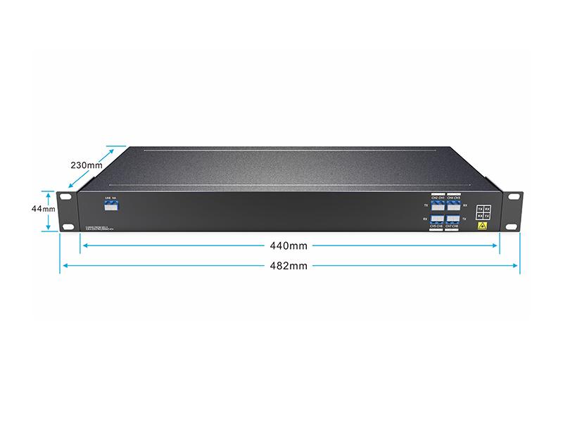 O multiplexador/demultiplexador DWDM de banda O de fibra única com 4 canais (8 comprimentos de onda) foi projetado pela FIBERWDM. Trata-se de um dispositivo DWDM totalmente passivo, que suporta baixa perda de inserção (portas de comprimento de onda < 3,0 dB). Os comprimentos de onda são 1304,58/1305,72/1306,85/1308,00/1309,14/1310,28/1311,43/1312,58 nm, suportando transmissão de 4 canais em uma única fibra.