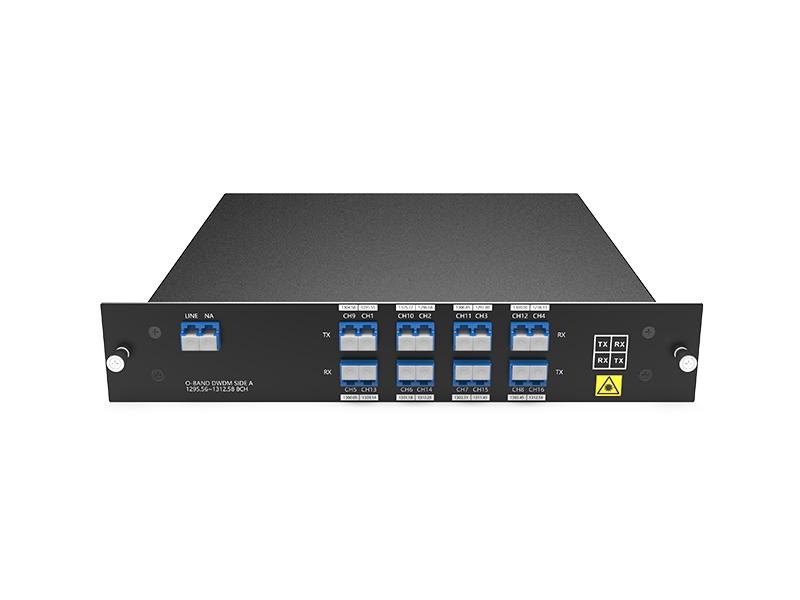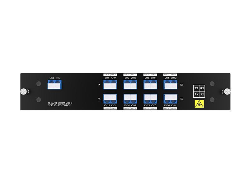O multiplexador/demultiplexador DWDM de banda O de fibra única com 8 canais (16 comprimentos de onda) foi projetado pela FIBERWDM. Trata-se de um dispositivo DWDM totalmente passivo, que suporta baixa perda de inserção (portas de comprimento de onda < 4,8 dB). Os comprimentos de onda suportados são 1295,56/1296,68/1297,80/1298,93/1300,05/1301,18/1302,31/1303,45/1304,58/1305,72/1306,85/1308,00/1309,14/1310,28/1311,43/1312,58 nm, permitindo a transmissão de 8 canais em uma única fibra.