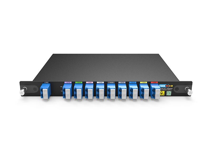 O multiplexador/demultiplexador CWDM de fibra única com 9 canais (18 comprimentos de onda) foi projetado pela FIBERWDM. Os comprimentos de onda do lado A são: RX 1270, 1310, 1350, 1390, 1430, 1470, 1510, 1550, 1590 nm / TX 1290, 1330, 1370, 1410, 1450, 1490, 1530, 1570, 1610 nm, e os comprimentos de onda do lado B são: RX 1290, 1330, 1370, 1410, 1450, 1490, 1530, 1570, 1610 nm / TX 1270, 1310, 1350, 1390, 1430, 1470, 1510, 1550, 1590 nm; é um dispositivo CWDM passivo e uma caixa LGX plugável, que pode ser conectada em um rack 1U de 2 slots, suportando 9 canais de negócios diferentes em uma fibra óptica para transmissão ponto a ponto bidirecional.